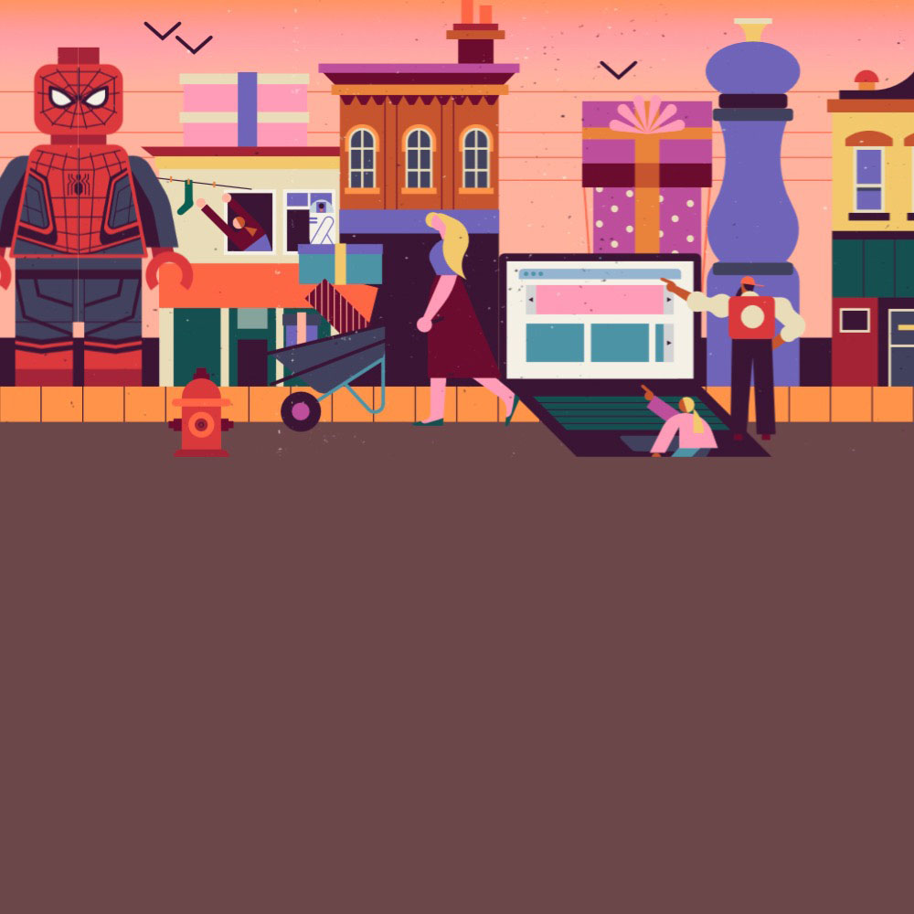 얘들아, 우리 저 큰 지붕 아래서 놀자.