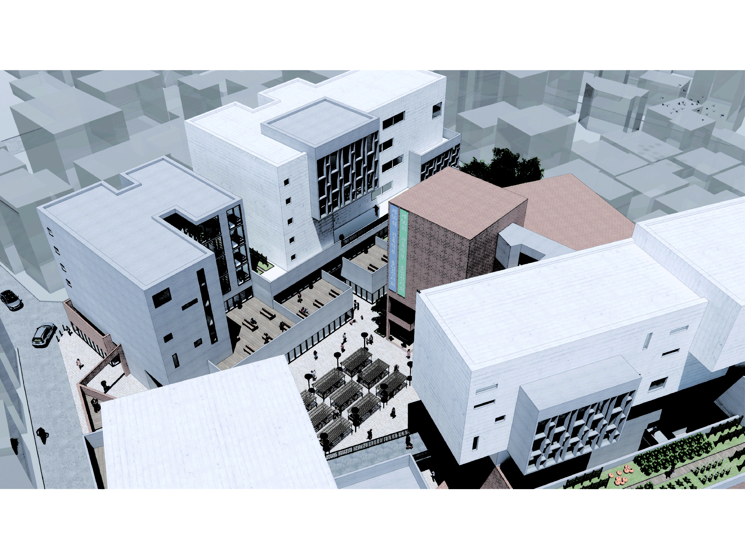 노인층이 밀집한 서울시 동작구 사당동 1040일대에 위치한 ‘4堂'(사당)은 소외된 노인층이 고립되지 않고 같은 세대와 소통할 수 있는 문화시설 및 주거시설을 결합하여 같은 세대간의 유대감을 형성하는 목표를 두고 설계하였다. 더불어 임대료는 저렴하고 넓은 교통망과 출퇴근에 유리한 입지 덕에 많은 청년들이 이 사당동에 사는데, 더이상 열악하지 않고 다양한 유형의 주거를 선택할 수 있도록 하였다. 이 두 세대가 한 공간에서 자연스럽게 섞이기 위해서는 공통사와 공감이 필요한데, 이벤트성의 마켓이 열릴 수 있는 마당과 소비행위를 할 수 있는 상업공간을 배치하였다.