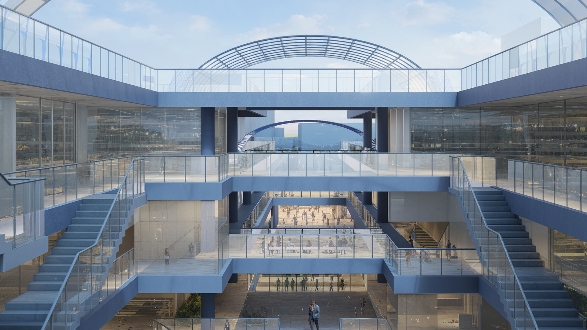 공간은 중앙 아트리움을 중심으로 현충로에서 한강 산책로까지 자연스러운 흐름을 형성하며, 어린이집과 도서관, 커뮤니티 공간이 유기적으로 배치되어 있다.