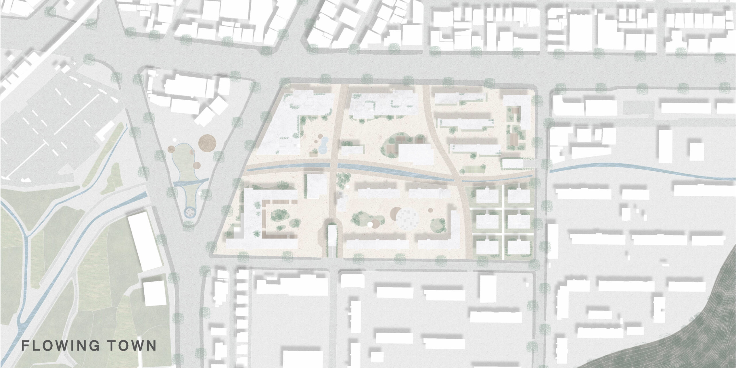 사이트 인근 공터에 수공간과 함께 단지 중심을 통과하는 수공원을 계획하여 고양시의 주요 하천 중 하나인 대장천을 확장 시킨다.