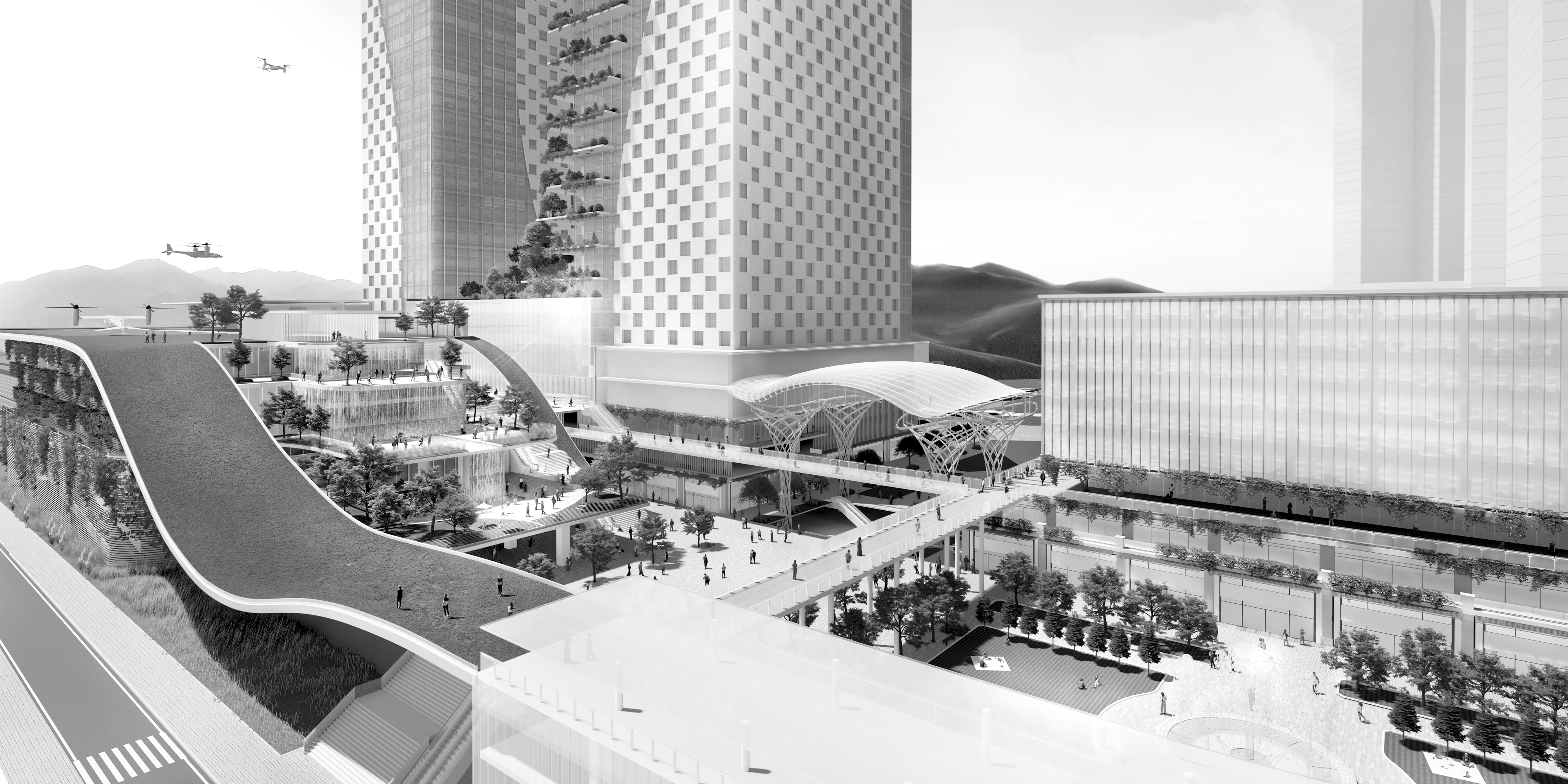 경부간선도로 지하화 및 공원화, 물류 복합단지 개발, 역사 신설 등 변화하는 도시에 대응하여 만남의 광장의 새로운 모습을 제안한다